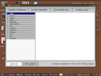 Por si no fuera bastante, si disponemos de conexión a la red podemos instalar programas adicionales en la memoria con el gestor gráfico de paquetes myDSL, que clasifica los programas por categorías: Gimp, OpenOffice, Dosbox, AbiWord, Ghostview… todo a un sólo clic de ratón.
